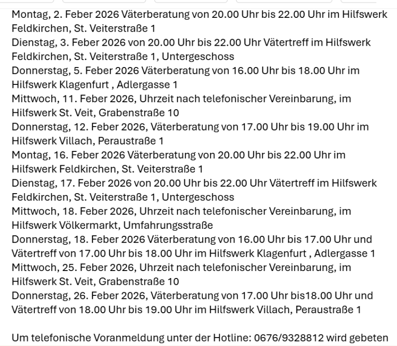 Beratungstermine für Feber 2026